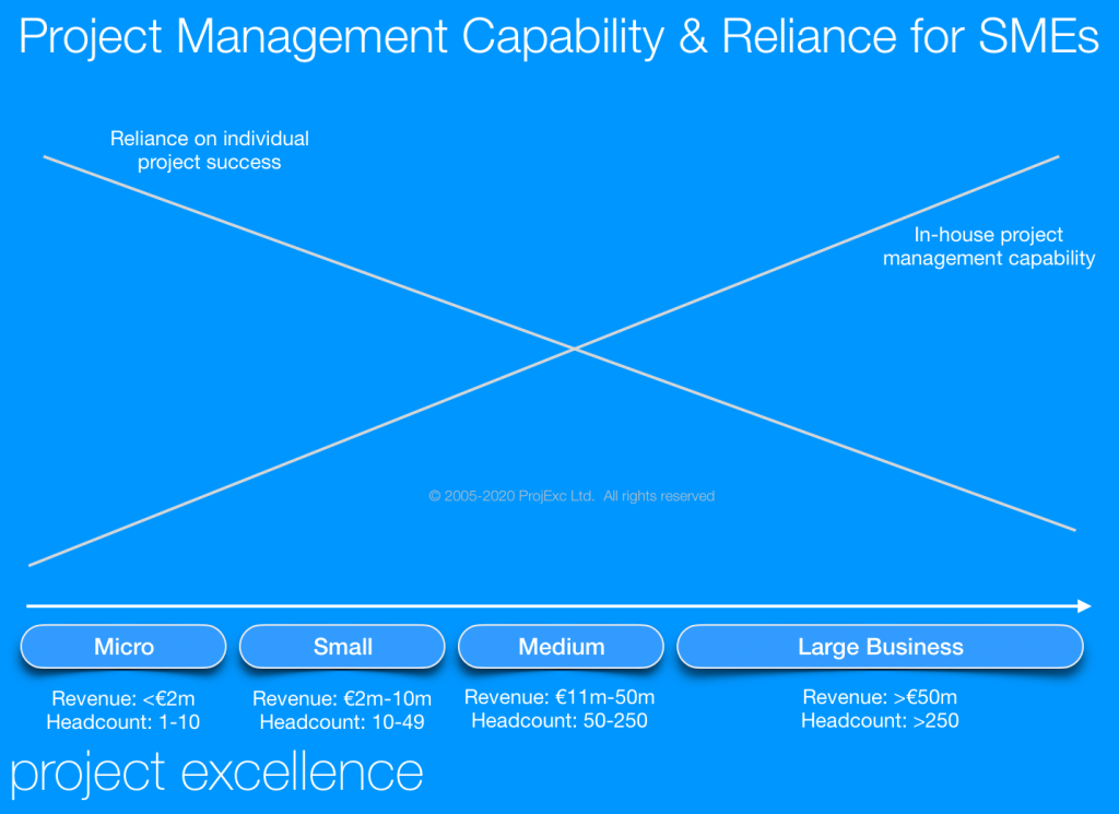 Over the last 5 years, or so, we have seen a significant shift. With the “projectification of society“, there are now many more project managers working in smaller organisations (SMEs) than traditional project managers.